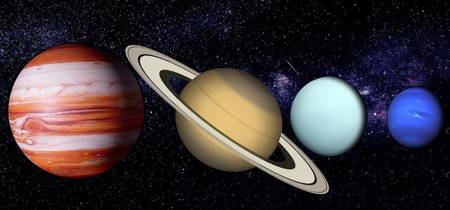 태양계의 바깥쪽을 도는 네 개의 거대한 행성은 목성형 행성, 가스 행성, 외행성이라고 부릅니다. 태양계에서 수소와 헬륨 따위의 유체(fluid) 형태를 주성분으로 하는 행성을 가리키며, 목성, 토성, 천왕성, 해왕성이 이에 해당합니다. 이들의 질량은 태양을 도는 8개의 행성의 99%를 차지하며, 암 행성에 비해 무겁지만, 밀도는 상대적으로 낮아 암석 행성의 20% 수준입니다. 이들 네 행성은 모두 고리를 갖고 있으나, 토성만 지구에서 고리를 관찰할 수 있습니다.